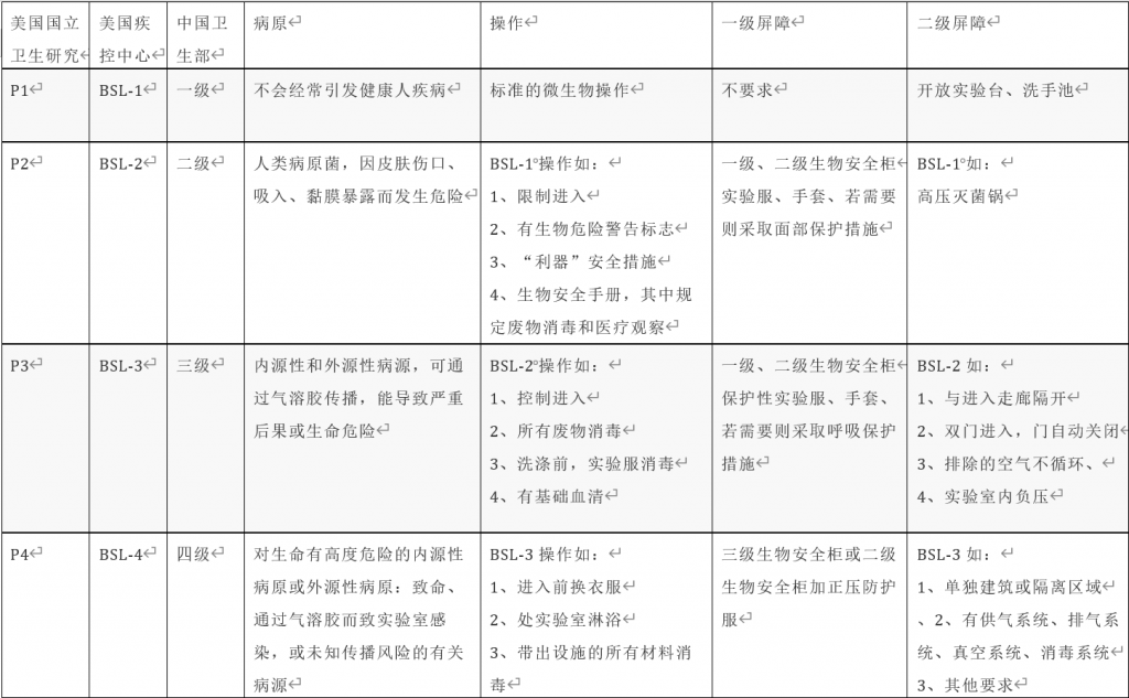 P是英语protect 保护的缩写。实验室具备跟一般微生物学实验室相同等级的设备.