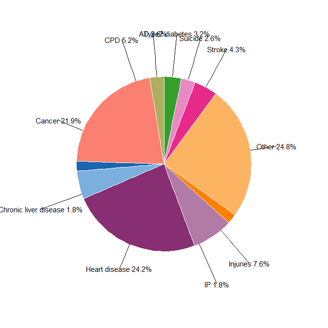 disease_type <- c("Heart disease", "Cancer","Injuries", "CPD", "Stroke",'Type2 diabetes', "AD","Suicide","IP","Chronic liver disease","Other")